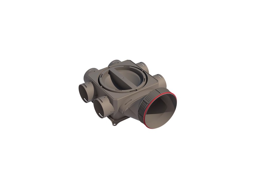DBox 206-boční připojení, připojovací hrdlo 160, 6x připojovací hrdlo pro potrubí AE a 3x uzavírací víčko.